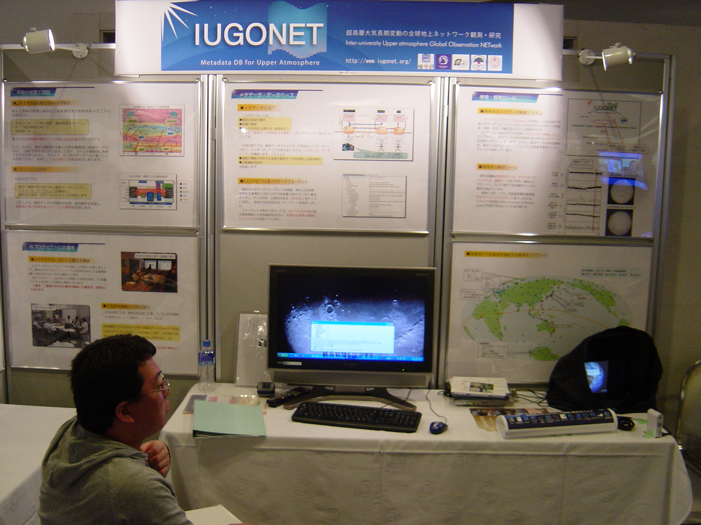 研究所,東北大学,名古屋大学,京都大学,九州大学)の取り扱う地上観測 データを,ユーザーが横断的に検索・利用できるシステムを提供します.平 成23年4月に予定しているメタデータ・データベースの公開に先立ち,メタ データ・データベースと解析ツールのプロトタイプを展示します. 【分野】太陽地球惑星科学