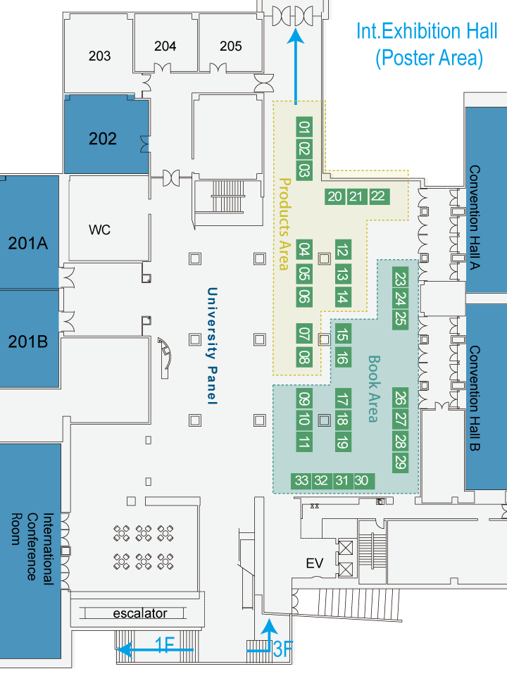 Exhibitors focusing on book sales and editing are requested to exhibit in the Book Area. Exhibitors focusing on related merchandise (goods, etc.) are requested to exhibit in the Products Area.