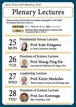We will be holding Plenary Lectures at JpGU - AGU Joint Meeting. We sincerely hope that many researchers will attend.