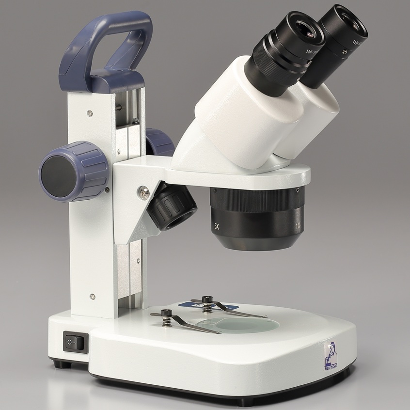 使い易さに徹底的にこだわった、エントリークラスの双眼実体顕微鏡です。 軽量、コンパクト、キャリーグリップ、充電機能付のLED照明等、気軽に持ち出してご利用頂くための機能と、頑強なメタルラック&ピニオンボディを備え、特に教育・実習の現場に最適なモデルです。 一般的なターレット変倍式実体顕微鏡は2段階の変倍のものがほとんどですが、EM-22は3段階(総合倍率10X、20X、30X)の変倍が可能となっております。