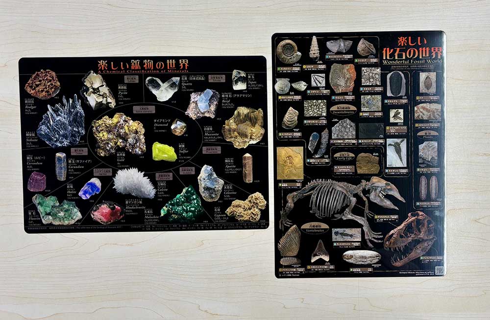 GSJオリジナル下敷きセットです。デザインは化石と鉱物の2種類。現在地質標本館で販売されている下敷きとは、材質が少し異なる非売品です。