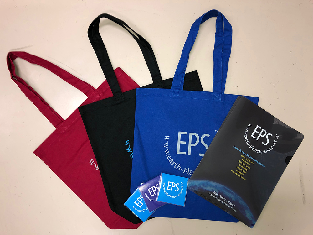 欧文誌EPS特製トートバッグ.論文執筆がはかどること間違いなし! 論文投稿は是非フルオープンアクセスのEPS誌に.