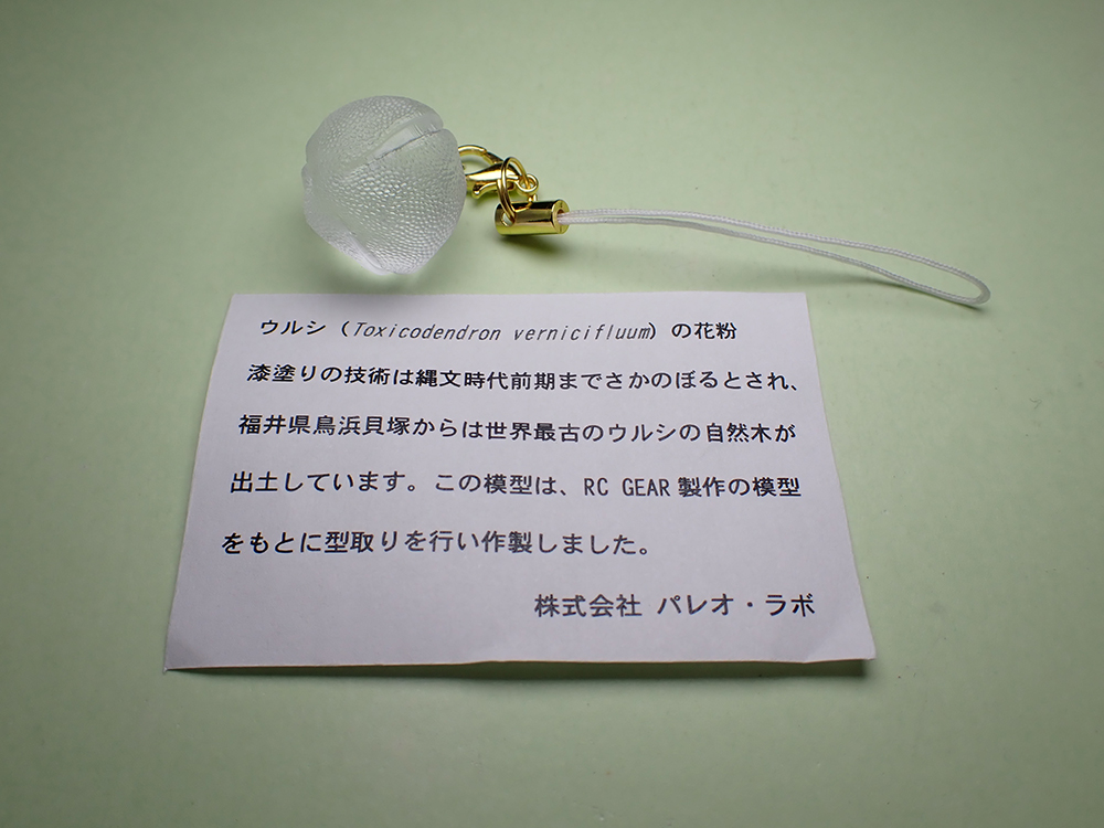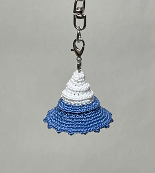 レース編みの放散虫アクセサリーです。新作の Andromeda(ジュラ紀) の富士山色です。本体は木綿糸にステンレス金具付、長さ3cm。キーホルダー金具・ストラップ紐が付属します。