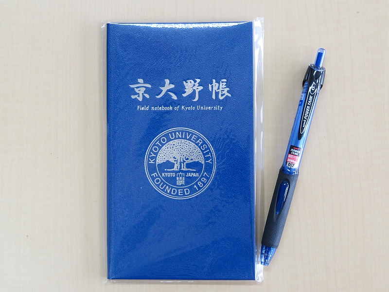 3 名様「大学はジャングルだ!」をコンセプトに作られた京都大学オリジナル野帳と.氷点下の環境や、ジャングルの雨で濡れた紙にも上向きに書ける加圧式ボールペン(青)のセット.