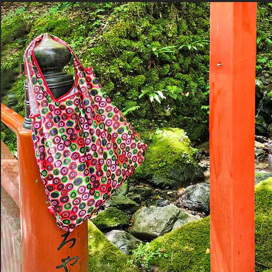 The prints on the reusable bags are reproductions of paintings by artists with disabilities.