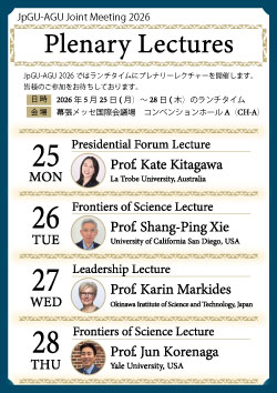 JpGU - AGU Joint Meeting 2026では、プレナリーレクチャーを開催いたします。多くの皆様の聴講をお待ちしております。